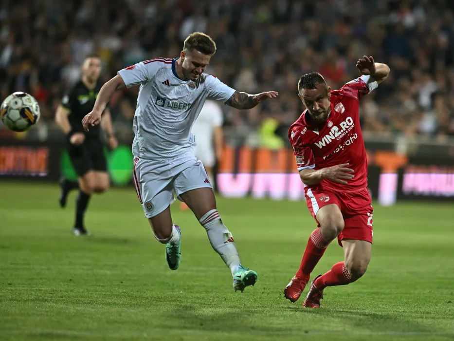 Alexandru Mihai Constantin Pop si Răzvan Bogdan Patriche Nichita in meciul de fotbal dintre Otelul Galati si Dinamo Bucuresti, din cadrul Play-out-ului Superligii Superbet, desfasurat pe Stadionul Otelul din Galati, luni 8 aprilie 2024. © FOTO:Razvan Pasarica/SPORT PICTURES