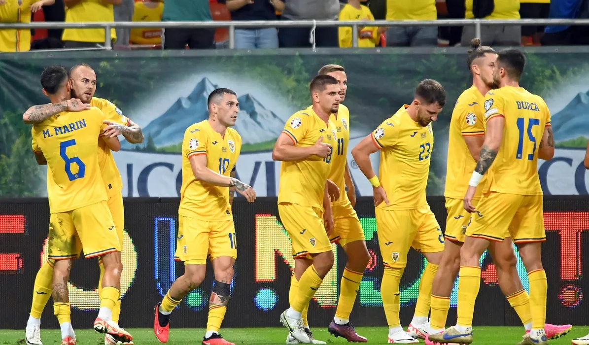 Bucurie a fotbalistilor romani dupa un gol marcat cu Denis Alibec, Nicolae Stanciu, Răzvan Marin, Nicușor Bancu si Deian Sorescu in meciul de fotbal dintre Romania si Israel, din cadrul preliminariilor Campionatului European 2024, desfasurat pe Arena Nationala, sambata 9 septembrie 2023. © FOTO:Razvan Pasarica/SPORT PICTURES