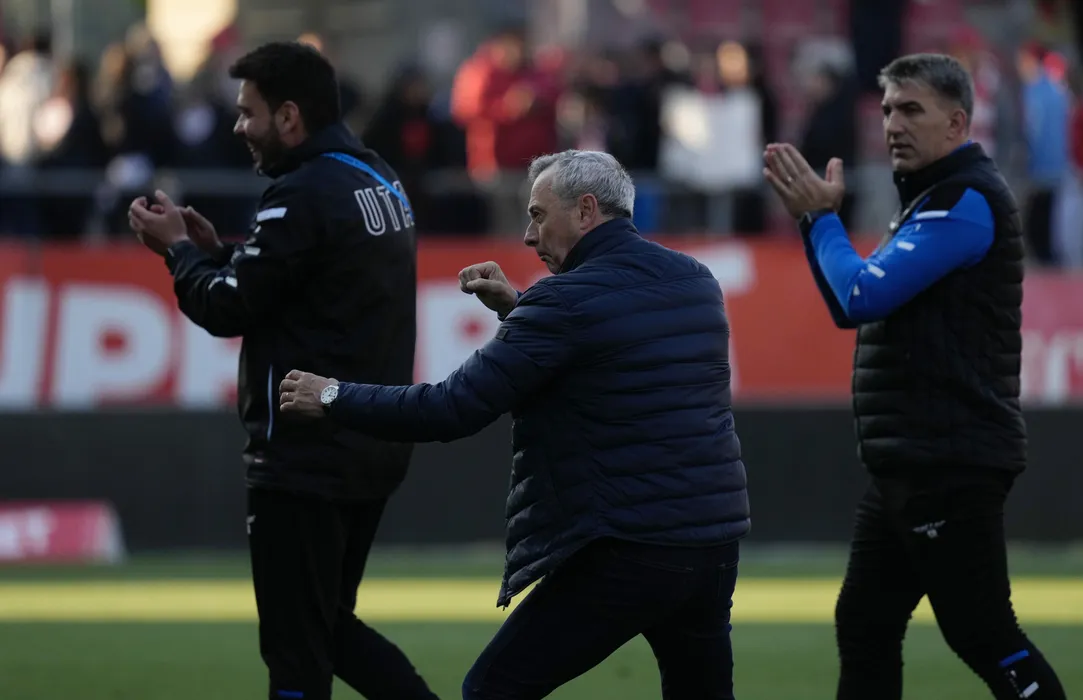 Mircea Rednic bucuros după meciul de fotbal dintre UTA Arad si SC Oțelul Galați, contând pentru Superliga Superbet Play-Out, desfășurat pe Arena Francisc Neuman din Arad, joi 25 aprilie 2024. © FOTO: Alexandra FECHETE/SPORT PICTURES