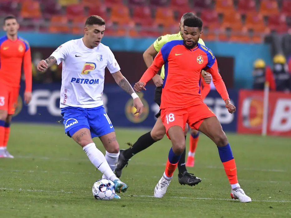Adrian Petre Tabarcea si Sylas Laouari Edjouma Malcom in meciul de fotbal dintre FCSB si Farul Constanta, contand pentru Liga 1 Casa Pariurilor, desfasurat pe Arena Nationala din Bucuresti, duminica 27 februarie 2022. © FOTO:Razvan Pasarica/SPORT PICTURES