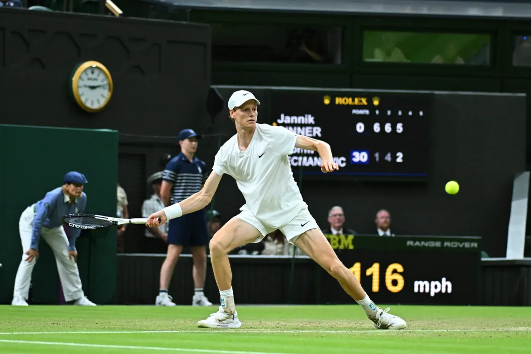 Jannik Sinner (ITA) during his third round match at the 2024 Wimbledon Championships at the AELTC in London, UK, on July 5, 2024. Photo by Corinne Dubreuil/ABACAPRESS.COM