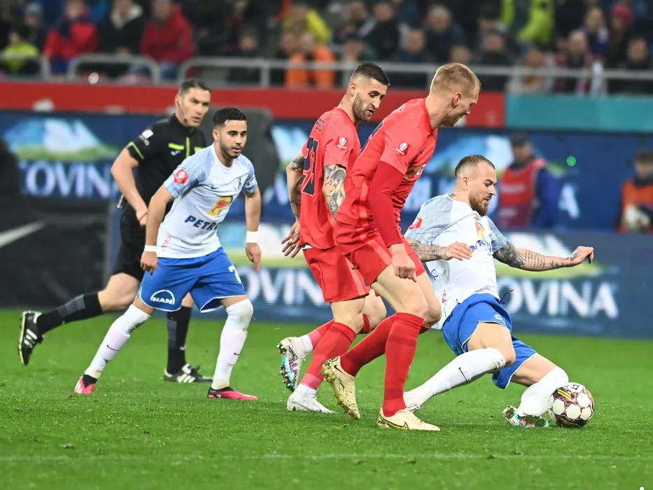 Enes Sali, Ovidiu Marian Popescu si Denis Alibec in meciul de fotbal dintre FCSB si Farul Constanta, contand pentru Play-off-ul Superligii Superbet, desfasurat pe Arena Nationala din Bucuresti, luni 17 aprilie 2023. © FOTO:Razvan Pasarica/SPORT PICTURES