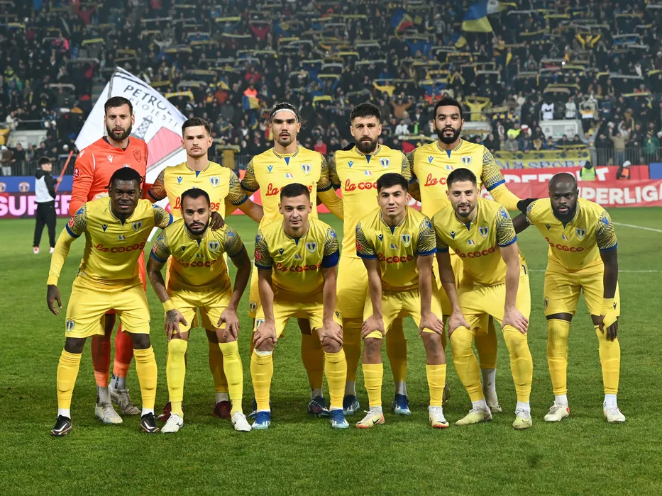 Fotbalistii ploiesteni la o fotografie de grup realizata inaintea meciului de fotbal dintre Petrolul Ploiesti si Rapid Bucuresti, din cadrul Superligii Superbet, desfasurat pe Stadionul Ilie Oana din Ploiesti, vineri 15 decembrie 2023. © FOTO:Razvan Pasarica/SPORT PICTURES