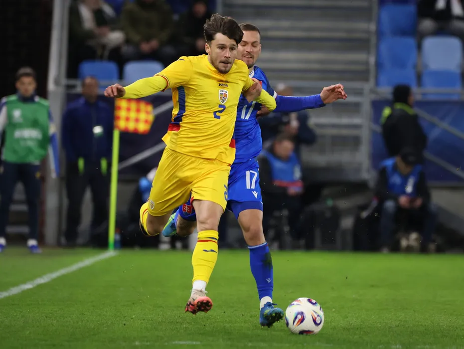 Andrei Ratiu si Lukas Haraslin in meciul amical de fotbal dintre Slovacia si Romania, desfasurat pe “Narodny futbalovy stadion” din Bratislava, marti 31 martie 2026. © FOTO:SPORT PICTURES