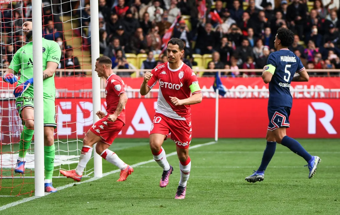 Monaco's French forward Wissam Ben Yedder (C) celebrates after scoring a penalty during the French L1 football match between AS Monaco and Paris Saint Germain (PSG) at the Louis II Stadium (Stade Louis II) in the Principality of Monaco on March 20, 2022.,Image: 671967800, License: Rights-managed, Restrictions: , Model Release: no, Credit line: Profimedia