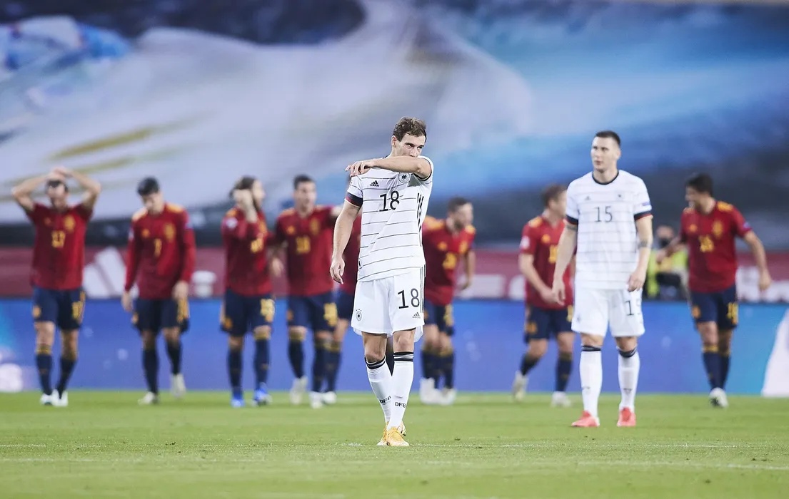 SEVILLE, SPAIN - NOVEMBER 17: Leon Goretzka of Germany reacts during the UEFA Nations League group stage match between Spain and Germany at Estadio de La Cartuja on November 17, 2020 in Seville, Spain. (Photo by Fran Santiago/Getty Images)