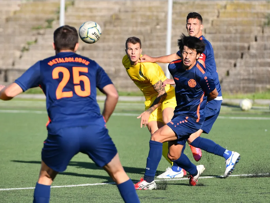 Pol Roige Rodriguez, Lucian Cazan si Mino Sota in meciul de fotbal dintre Metaloglobus Bucuresti si Petrolul Ploiesti, contand pentru Cupa Romaniei, desfasurat fara spectatori pe Stadionul Metaloglobus din Bucuresti, miercuri 21 octombrie 2020. © FOTO:Razvan Pasarica/SPORT PICTURES