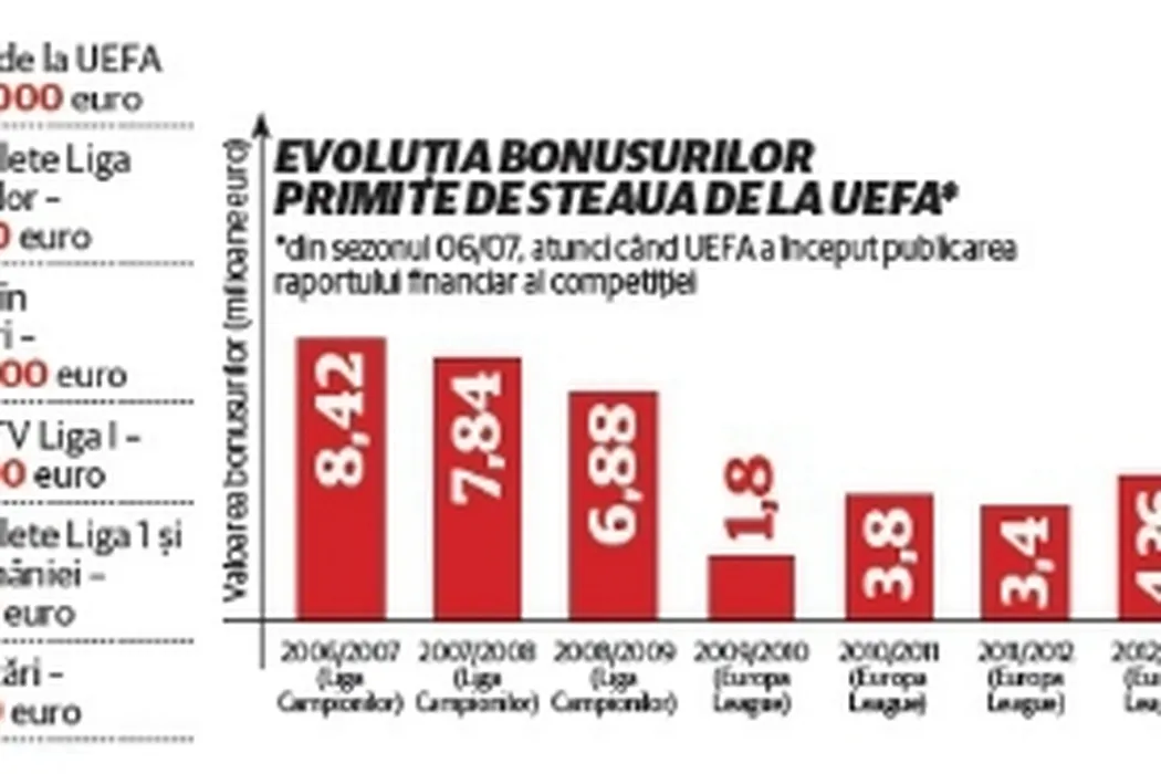 Record absolut în istoria fotbalului românesc! Câți bani va încasa Steaua până la finalul acestui sezon
