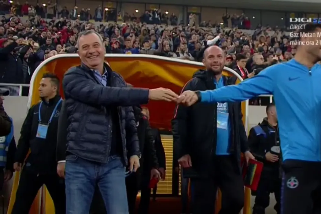 Rednic și Dică, față în față după „războiul” din săptămâna Marelui Derby. Imaginea care nu mai are nevoie de cuvinte: gestul făcut de cei doi când s-au văzut pe marginea terenului. FOTO