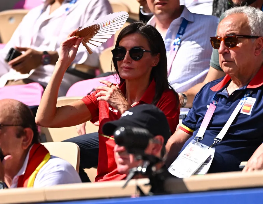 Queen Letizia of Spain attending Carlos Alcaraz of Team Spain against Tommy Paul of Team United States tennis match during the Men's Singles Quarter-final match on day six of the Olympic Games Paris 2024 at Roland Garros on August 01, 2024 in Paris, France.,Image: 894917064, License: Rights-managed, Restrictions: , Model Release: no