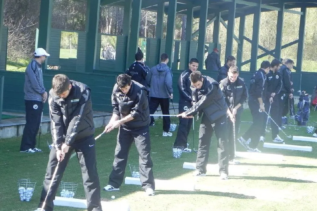 Relaxare înainte de „războaiele” Rapid și Steaua!** Jucătorii lui „U” au încercat să-l imite pe Tiger Woods
