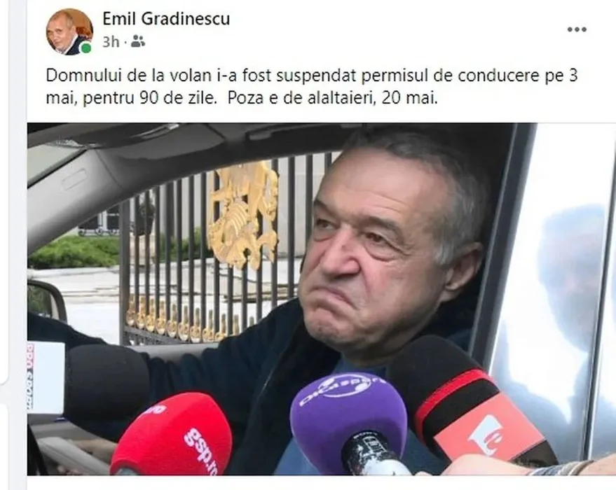 Replica patronului FCSB, după mesajul „Gigi Becali, la volan, la 17 zile de când i-a fost suspendat permisul pentru 3 luni”