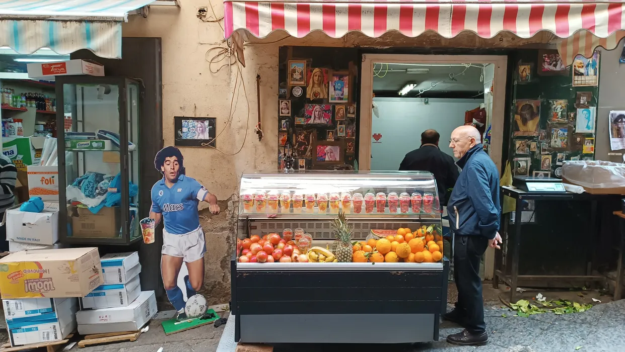 Maradona este imaginea multor afaceri din Napoli. În această imagine. Diego vinde fructe. Sursă foto: ProSport