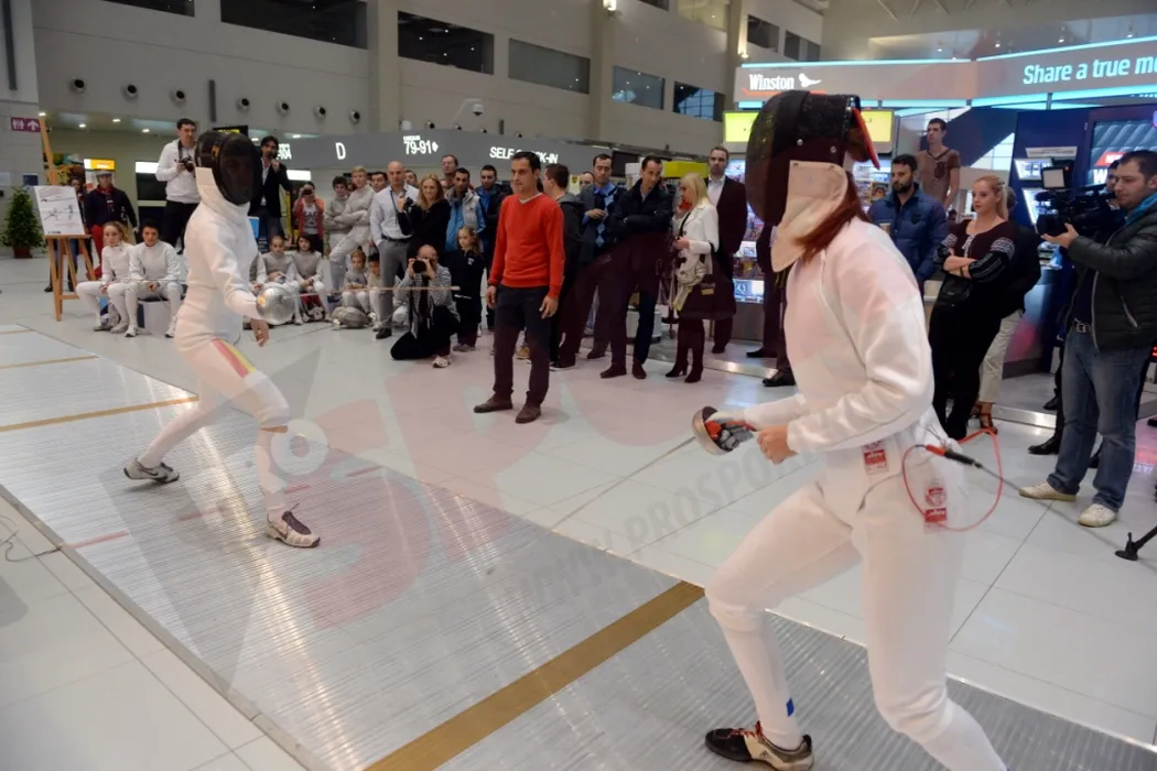 REPORTAJ ÎN AEROPORT| Armele permise. Armele campionilor. Demonstrație de scrimă în terminalul plecărilor către medalii