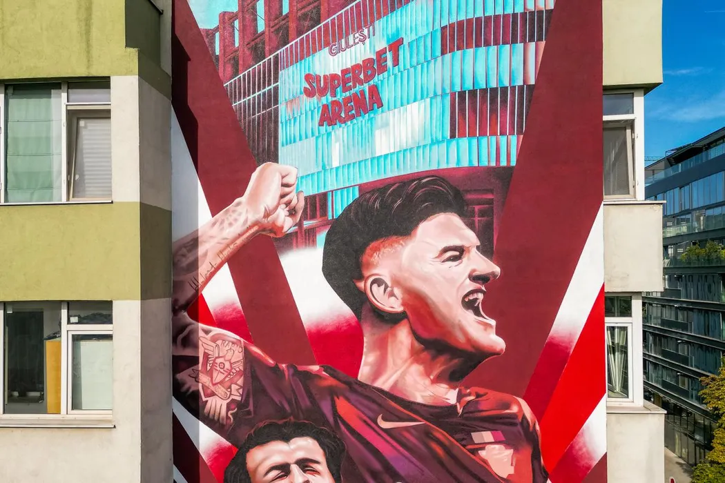Reportaj la înălțime. Povestea muralului cât opt etaje în care apar Radu Drăgușin, Nicolae Stanciu și Andrei Rațiu: „Cine i-a pictat nici nu știe cine sunt. Oamenii sunt reticenți, apoi vin cu ciorbă și bere”. EXCLUSIV