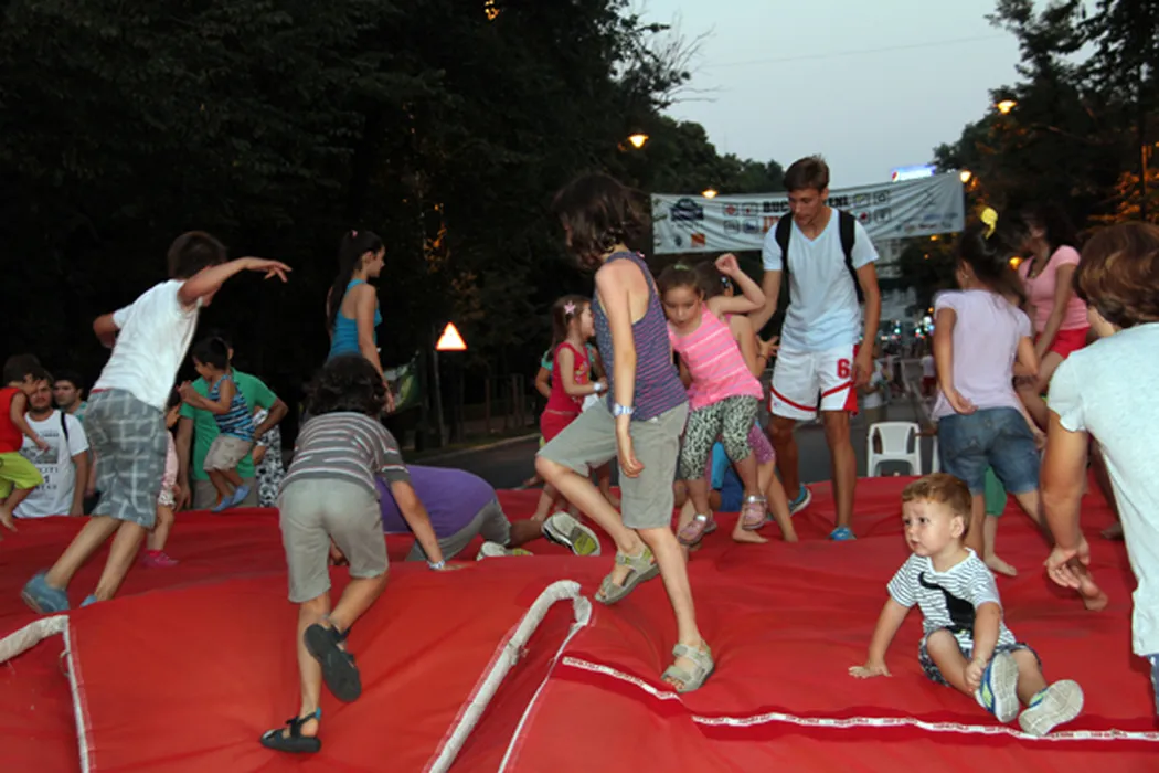 Reportaj la spectacolul de săritura cu prăjina de pe bulevardul Kisselef. Juniorii nu au sărit peste Arcul de Triumf, dar i-au uimit pe spectatori