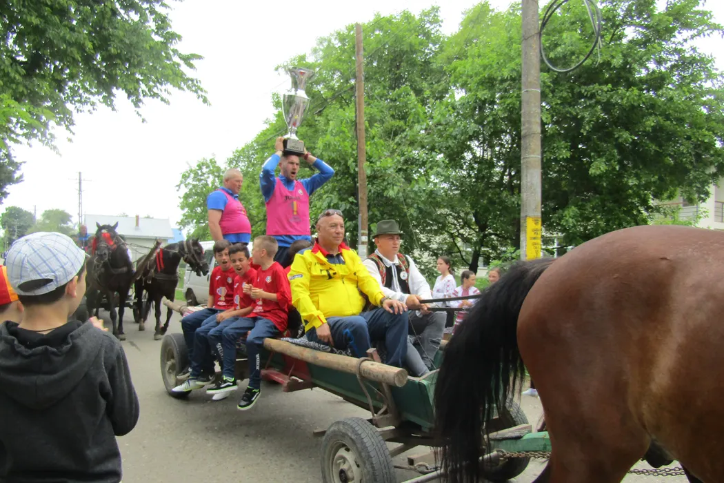 REPORTAJ | Parada campionilor, la Ruginoasa. Campionii Cupei Satelor au făcut turul de onoare al comunei și le-au prezentat locuitorilor comunei ieșene prețiosul trofeu, în acorduri de muzică de fanfară. Aurel Țicleanu și alți reprezentanți ai FRF i-au însoțit pe campioni în acest tur