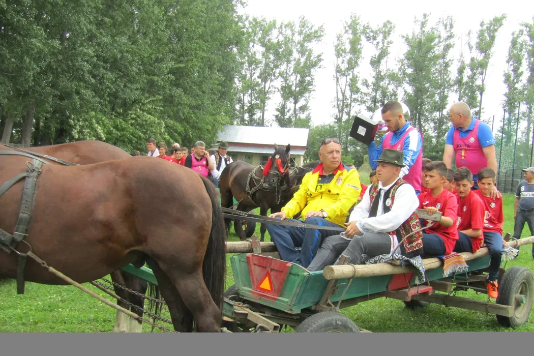 REPORTAJ | Parada campionilor, la Ruginoasa. Campionii Cupei Satelor au făcut turul de onoare al comunei și le-au prezentat locuitorilor comunei ieșene prețiosul trofeu, în acorduri de muzică de fanfară. Aurel Țicleanu și alți reprezentanți ai FRF i-au însoțit pe campioni în acest tur