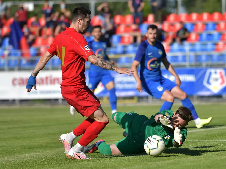 Dragos Huiban si Mihai Irimiea in meciul de fotbal dintre CSA Steaua Bucuresti si CS Afumati, barajul pentru promovarea in Liga a-2-a, desfasurat pe Terenul 5 al Complexului Sportiv Ghencea din Bucuresti, sambata 22 mai 2021. © FOTO:Razvan Pasarica/SPORT PICTURES
