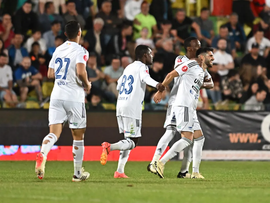 Bucurie a fotbalistilor botoseneni dupa un gol marcat de catre Arpad Sebastian Mailat in meciul de fotbal dintre CS Mioveni si FC Botosani, barajul retur pentru mentinere/retrogradare in Superliga Superbet, desfasurat pe Stadionul Orasenesc din Mioveni, vineri 24 mai 2024. © FOTO:Razvan Pasarica/SPORT PICTURES