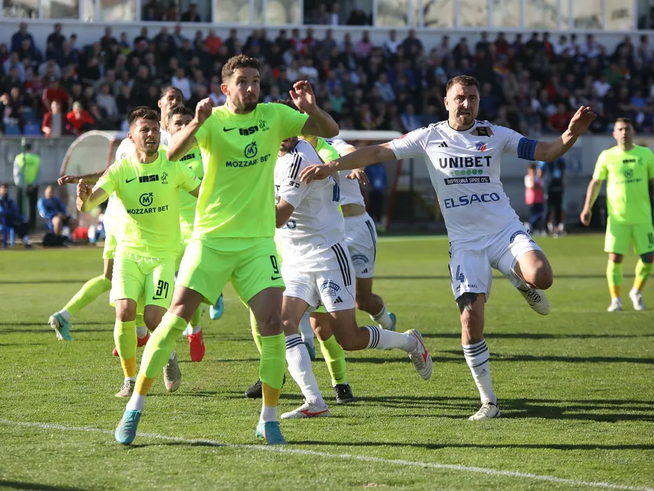 Mihai Cătălin Bordeianu, Sergiu Florin Buș si Andrei George Miron în meciul de fotbal dintre AFC Botoșani și ACSM Politehnica Iași, contând pentru SUPERLIGA SUPERBET Play-Out, desfășurat pe Stadionul Municipal din Botoșani, sâmbătă 30 martie 2024. © FOTO: Ionuț TABULTOC/SPORT PICTURES