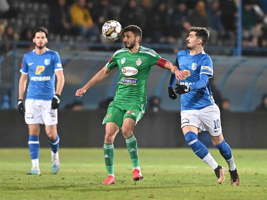 Nicolae Ionut Paun si Vladut Calin Morar in meciul de fotbal dintre Farul Constanta si Sepsi OSK Sfantu Gheorghe, contand pentru Superliga Superbet, desfasurat pe Stadionul central al Academiei Gheorghe Hagi din Ovidiu, marti 28 februarie 2023. © FOTO:Razvan Pasarica/SPORT PICTURES