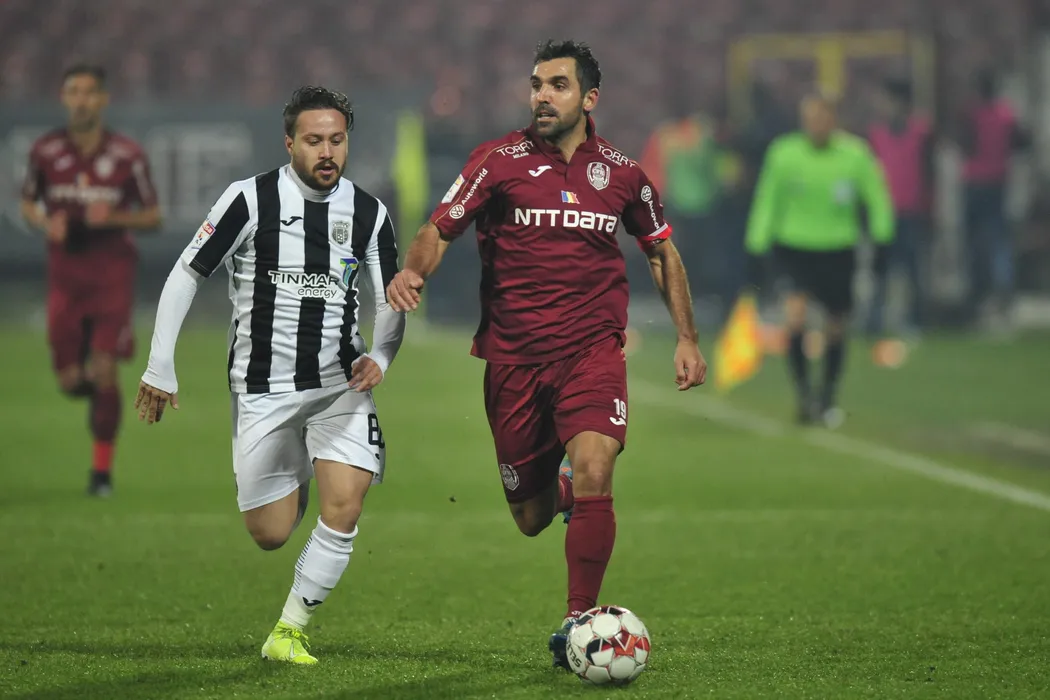 Culio (D), de la CFR Cluj, suteaza in timpul meciului de fotbal contra echipei Astra Giurgiu din etapa 21 a Ligii 1, disputat pe stadionul Dr. Constantin Radulescu din Cluj-Napoca, luni, 16 decembrie 2019. DAN HORIA TAUTAN / MEDIAFAX FOTO