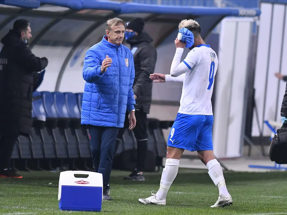 Emil Sandoi il felicita pe Andrei Virgil Ivan dupa meciul de fotbal dintre Universitatea Craiova si Chindia Targoviste, contand pentru Liga 1 Casa Pariurilor, desfasurat fara spectatori pe Stadionul Ion Oblemenco din Craiova, vineri 6 noiembrie 2020. © FOTO:Razvan Pasarica/SPORT PICTURES