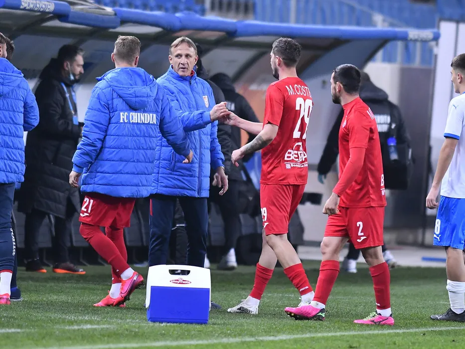 Emil Sandoi il felicita pe Mihai Costea in meciul de fotbal dintre Universitatea Craiova si Chindia Targoviste, contand pentru Liga 1 Casa Pariurilor, desfasurat fara spectatori pe Stadionul Ion Oblemenco din Craiova, vineri 6 noiembrie 2020. © FOTO:Razvan Pasarica/SPORT PICTURES