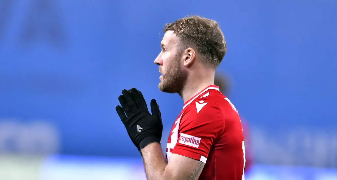 Adam Nemec se roaga la meciul de fotbal dintre Universitatea Craiova si Dinamo Bucuresti, contand pentru Liga 1 Casa Pariurilor, desfasurat fara spectatori pe Stadionul Ion Oblemenco din Craiova, sambata 6 februarie 2021. © FOTO:Razvan Pasarica/SPORT PICTURES