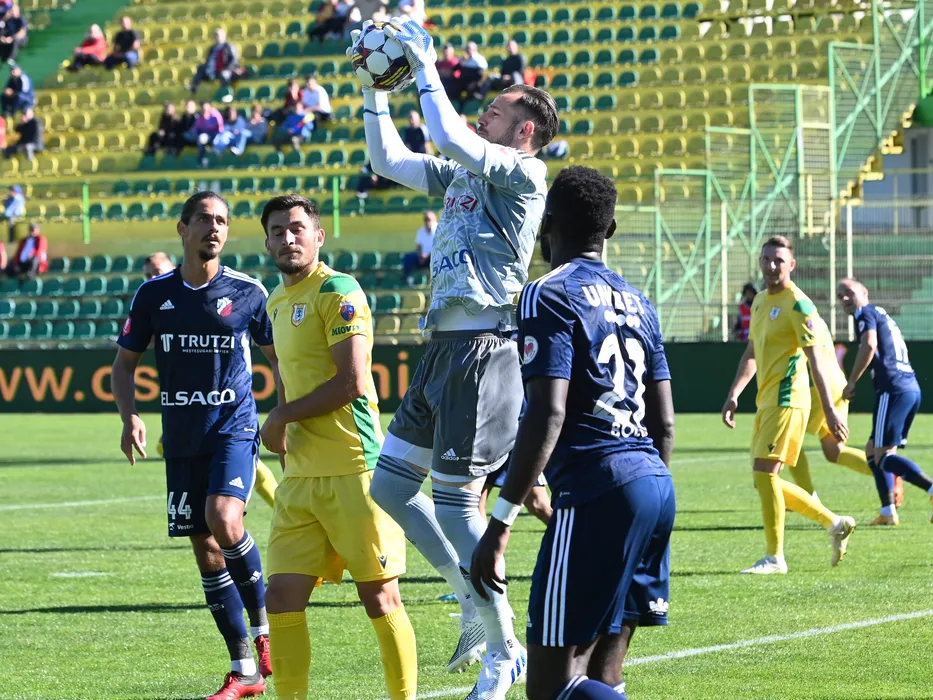 Rijad Sadiku, Blerim Krasniqi si Eduard Adrian Pap in meciul de fotbal dintre CS Mioveni si FC Botosani, contand pentru Superliga Superbet, desfasurat pe Stadionul Orasenesc din Mioveni, duminica 23 octombrie 2022. © FOTO:Razvan Pasarica/SPORT PICTURES
