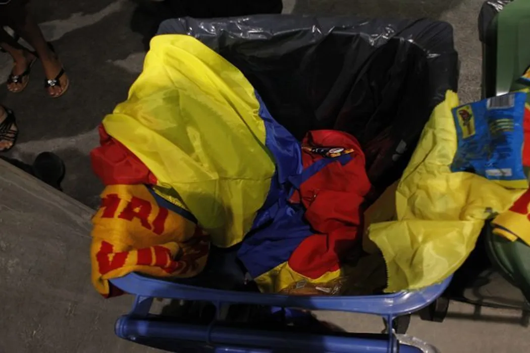 REVOLTĂ‚TOR! Imaginea care ne face de râs în orice colț al lumii!** La meciul naționalei, fanii au fost obligați să arunce tricolorul la GUNOI! INTERZIS cu drapelul!!