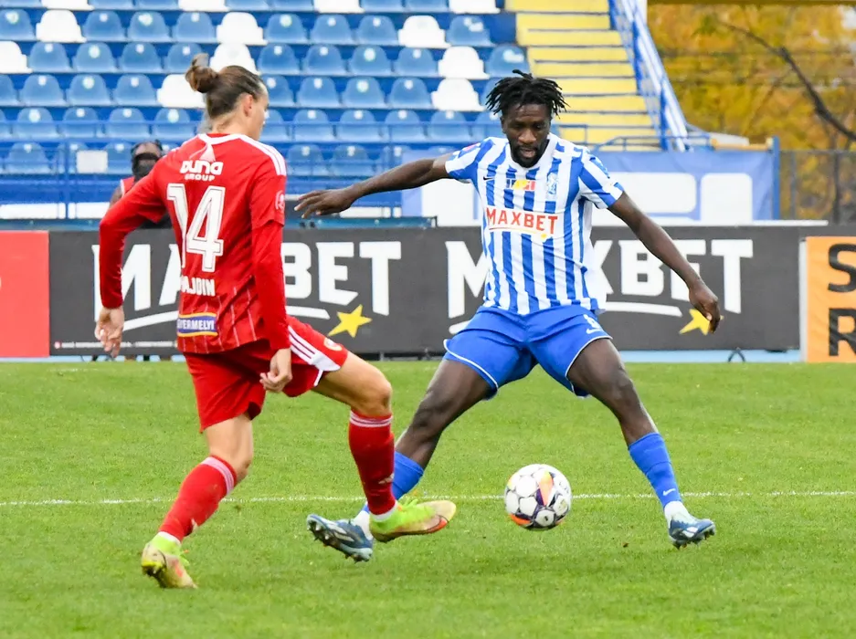 Samuel Yves Oum Gouet și Stefan Hajdin în meciul de fotbal dintre Poli Iași si Sepsi OSK Sfântu Gheorghe, contând pentru SuperLiga Superbet, desfășurat pe Stadionul Emil Alexandrescu din Iași, sâmbătă 9 noiembrie 2024. © FOTO: Tudi/SPORT PICTURES