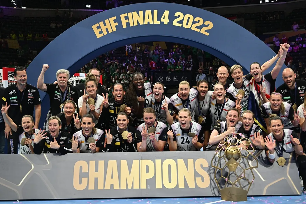Vipers Kristiansand players celebrate after winning the women's EHF Champions league Final 4 Handball final match Gyori Audi ETO KC v Vipers Kristiansand in Budapest, Hungary, on June 5, 2022. Vipers Kristiansand won the match 33-31.,Image: 697179699, License: Rights-managed, Restrictions: , Model Release: no, Credit line: Profimedia
