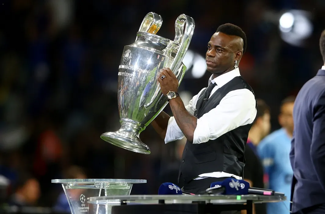 Mandatory Credit: Photo by Kieran McManus/Shutterstock 13949252ae Former Manchester City player Mario Balotelli seen with the Champions League trophy. Manchester City v Inter Milan, UEFA Champions League, Final, Football, Ataturk Stadium, Istanbul, Turkey - 10 Jun 2023 EDITORIAL USE ONLY No use with unauthorised audio, video, data, fixture lists, club/league logos or live services. Online in-match use limited to 120 images, no video emulation. No use in betting, games or single club/league/player publications. Manchester City v Inter Milan, UEFA Champions League, Final, Football, Ataturk Stadium, Istanbul, Turkey - 10 Jun 2023 EDITORIAL USE ONLY No use with unauthorised audio, video, data, fixture lists, club/league logos or live services. Online in-match use limited to 120 images, no video emulation. No use in betting, games or single club/league/player publications. PUBLICATIONxINxGERxSUIxAUTxHUNxGRExMLTxCYPxROUxBULxUAExKSAxONLY Copyright: xKieranxMcManus/Shutterstockx 13949252ae