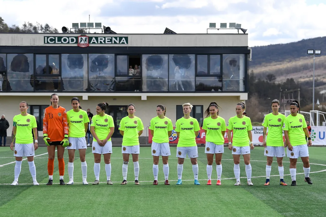 Meciul de fotbal dintre AFC Univesrsitatea Olimpia Cluj si CS Carmen Bucuresti, contand pentru Play-Off Liga 1 Fotbal Feminin, desfasurat pe stadionul Stadionul Iclod Arena din Cluj Napoca, duminica 26 martie 2023. © FOTO:Flaviu Buboi/SPORT PICTURES