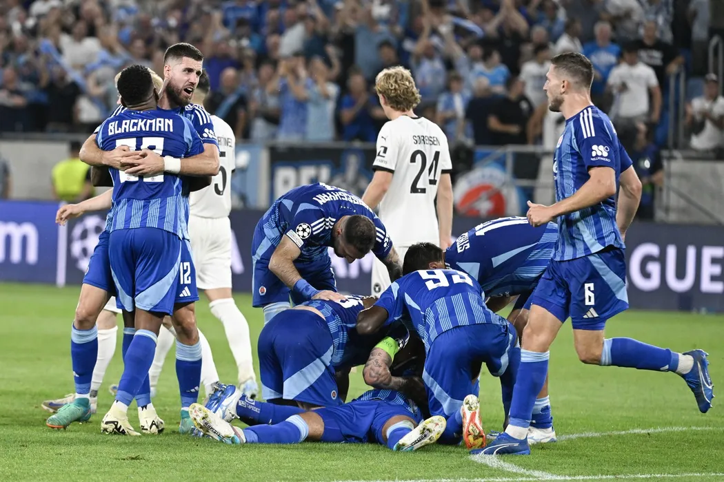 Na snímke radosť hráčov Slovana po strelení druhého gólu v odvetnom stretnutí play-off Ligy majstrov ŠK Slovan Bratislava - FC Midtjylland 28. augusta 2024 v Bratislave.,Image: 902427034, License: Rights-managed, Restrictions: Image must be credited: TASR / Profimedia, Model Release: no