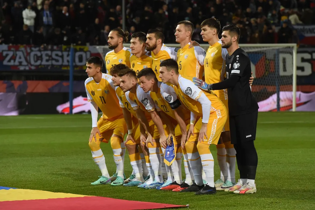 Utkání skupiny E kvalifikace mistrovství Evropy ve fotbale: Česko - Moldavsko, 20. listopadu 2023, Olomouc. Základní sestava Moldavska.,Image: 823305879, License: Rights-managed, Restrictions: , Model Release: no