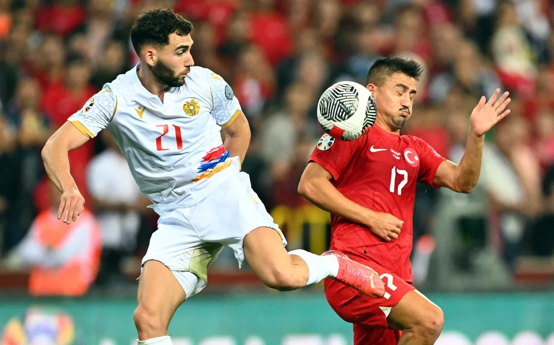 ESKISEHIR, TURKIYE - SEPTEMBER 08: Cengiz Under (17) of Turkiye and Nair Tiknizyan (21) of Armenia compete during the UEFA EURO 2024 Qualifying Round Group D football match between Turkiye and Armenia at Yeni Eskisehir Stadium in Eskisehir, Turkiye on September 08, 2023. Evrim Aydin / Anadolu Agency/ABACAPRESS.COM,Image: 803844040, License: Rights-managed, Restrictions: , Model Release: no