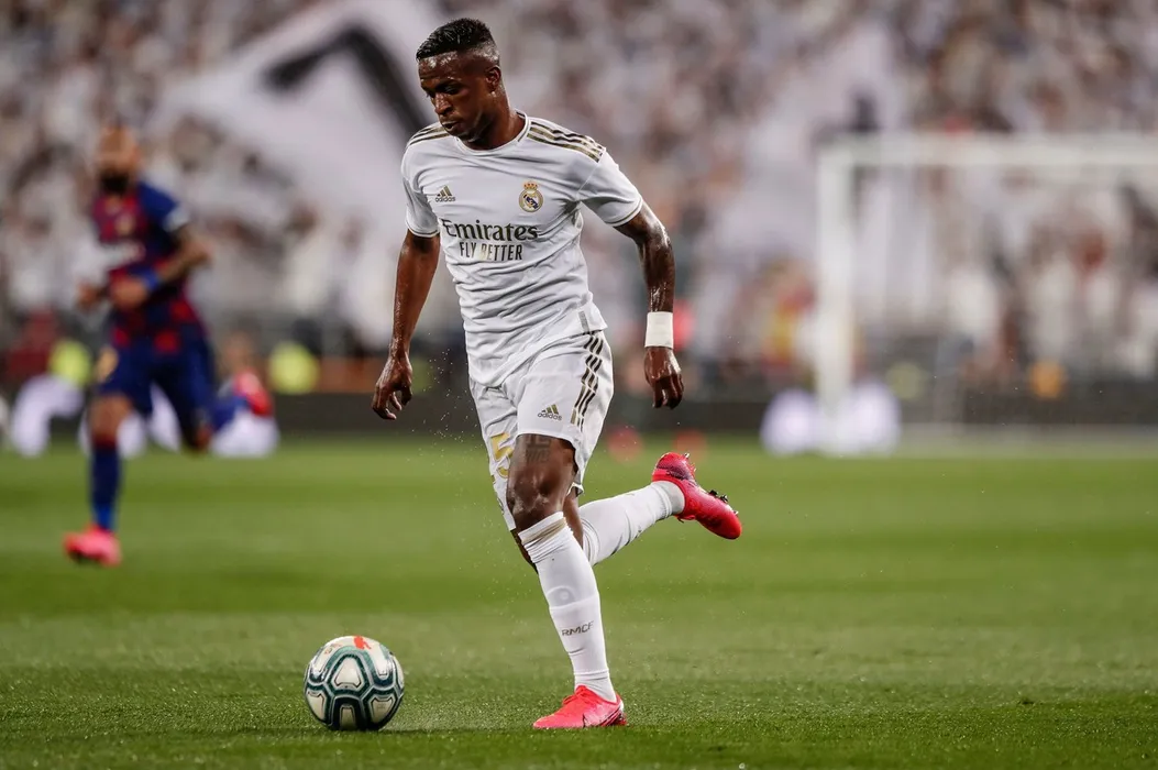 1st March 2020; Estadio Santiago Bernabeu, Madrid, Spain; La Liga Football, Real Madrid versus Club de Futbol Barcelona; Vinicius Junior (Real Madrid) breaks forward on the ball