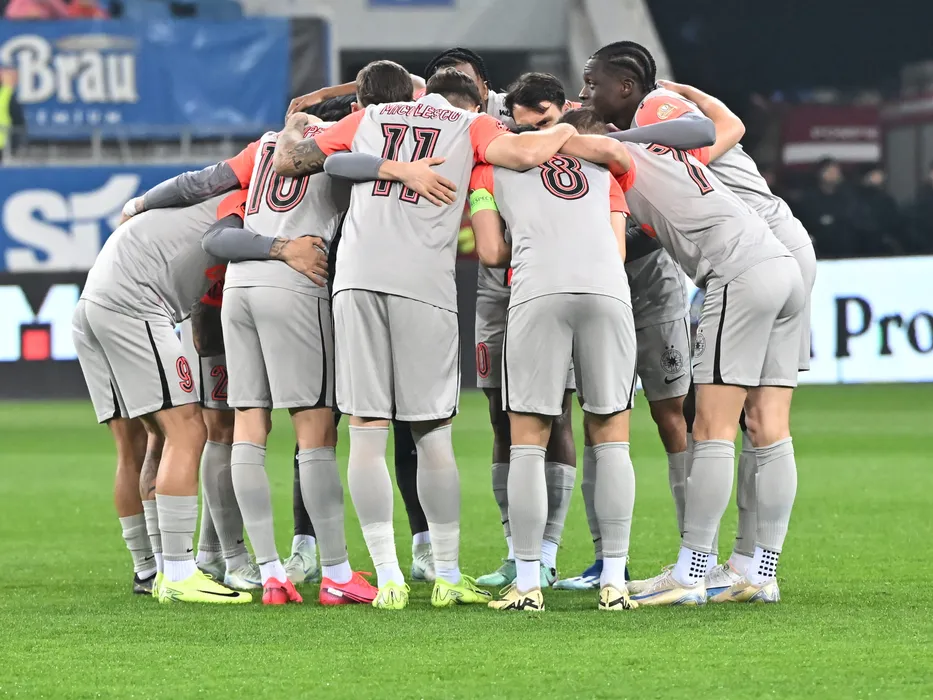 Fotbaliștii steliști se încurajează înaintea meciului dintre Universitatea Craiova si FCSB, contand pentru Superliga Superbet, desfasurat pe Stadionul Ion Oblemenco din Craiova, duminica 3 noiembrie 2024. © FOTO:Razvan Pasarica/SPORT PICTURES