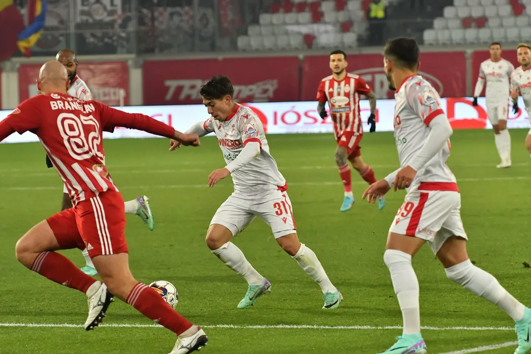 Costin Ionuț Amzar în meciul de fotbal dintre FC Sepsi OSK Sfantu Gheorghe și SC Dinamo 1948 Bucuresti, contând pentru SuperLiga Superbet, desfășurat pe Stadionul SEPSI Arena OSK din Sfântu Gheorghe, luni 4 decembrie 2023. © FOTO: Bogdan BALAS/SPORT PICTURES