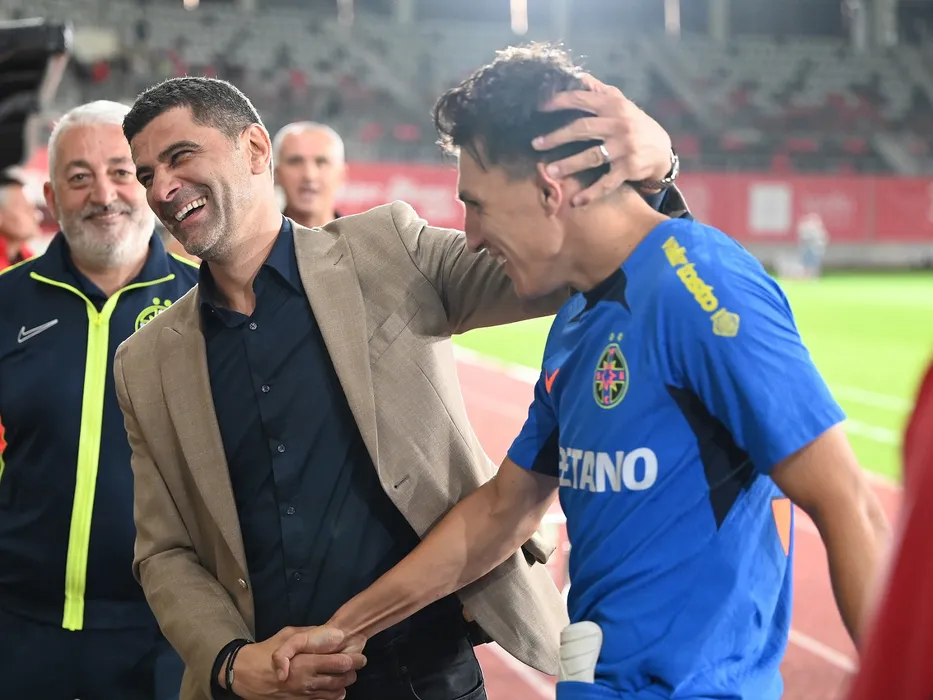 Dani Coman il felicita pe Risto Radunovic dupa meciul de fotbal dintre FC Hermannstadt si FCSB, contand pentru Superliga Superbet, desfasurat pe Stadionul Municipal din Sibiu, joi 21 septembrie 2023. © FOTO:Razvan Pasarica/SPORT PICTURES