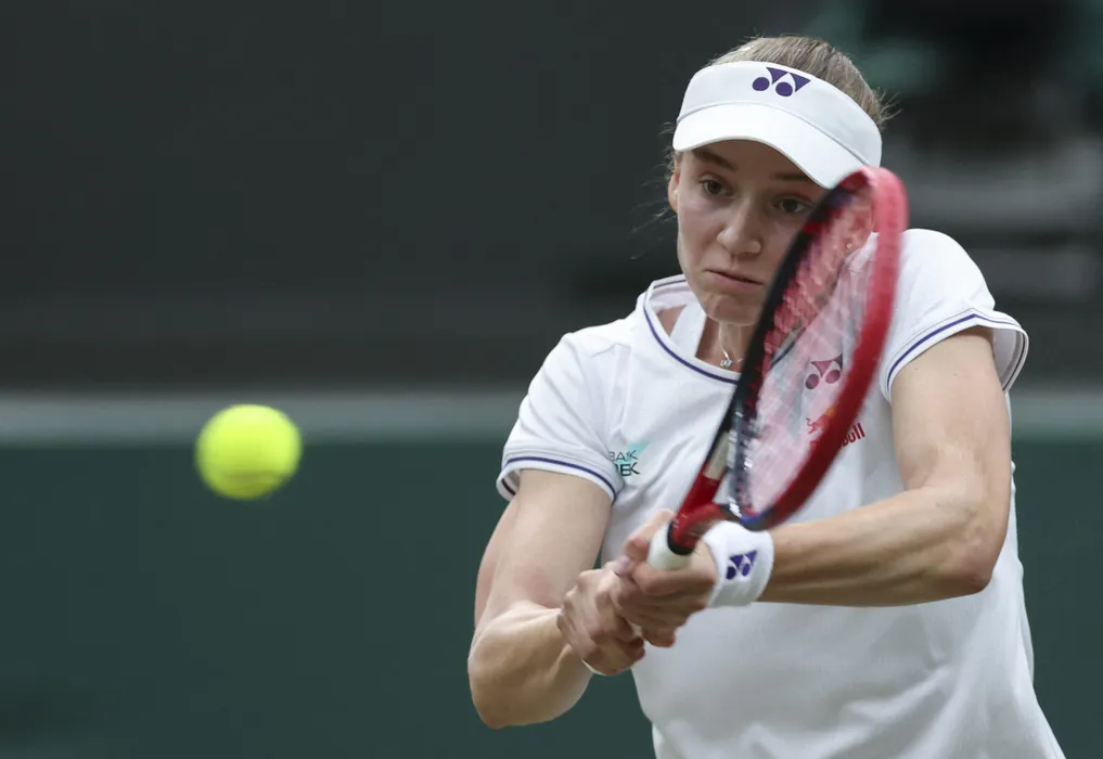 Elena Rybakina hits a return during the women's singles third round match between Elena Rybakina of Kazakhstan and Caroline Wozniacki of Denmark at Wimbledon tennis Championship in London, Britain on July 6, 2024. Photo by Han Yan/Xinhua/ABACAPRESS.COM