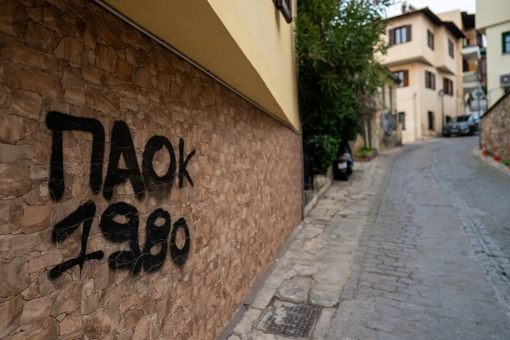 Rivalitatea dintre cele trei echipe din Salonic, descrisă în arta urbană de ultrașii greci. FOTO