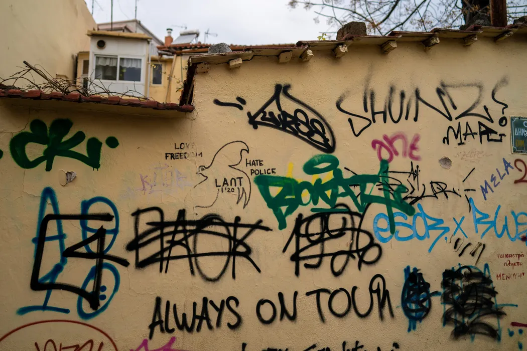Rivalitatea dintre cele trei echipe din Salonic, descrisă în arta urbană de ultrașii greci. FOTO