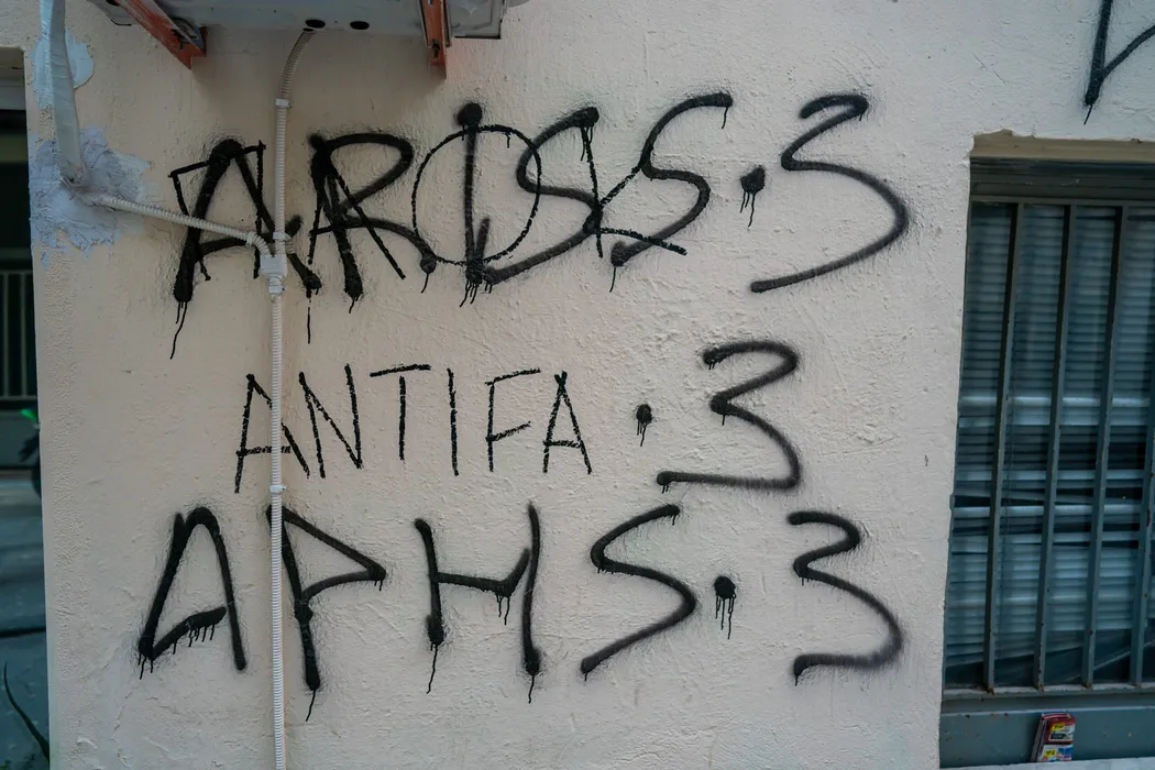 Rivalitatea dintre cele trei echipe din Salonic, descrisă în arta urbană de ultrașii greci. FOTO