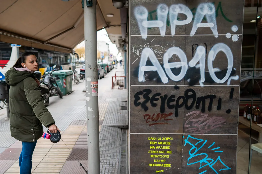 Rivalitatea dintre cele trei echipe din Salonic, descrisă în arta urbană de ultrașii greci. FOTO