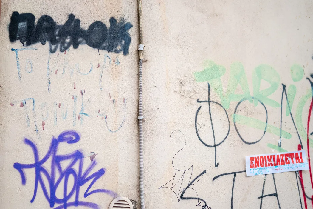 Rivalitatea dintre cele trei echipe din Salonic, descrisă în arta urbană de ultrașii greci. FOTO