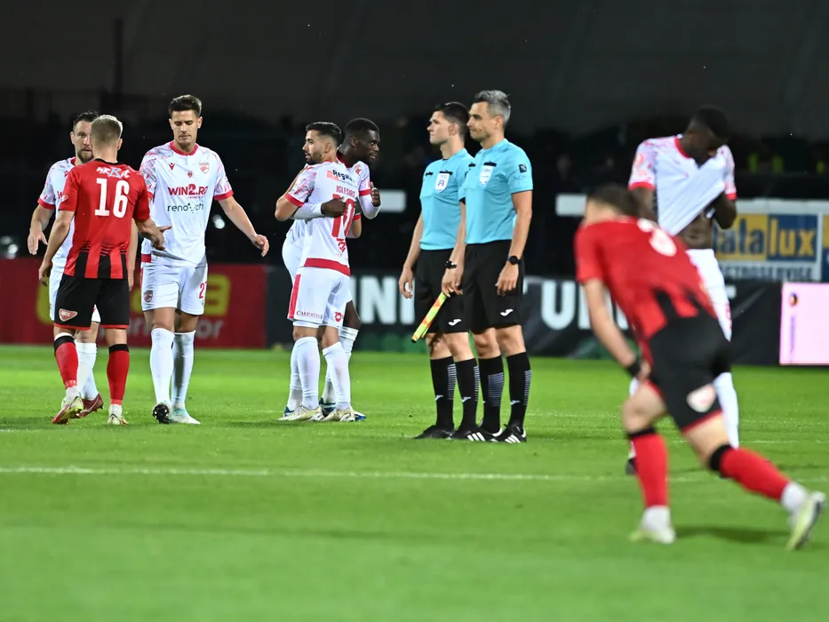 Fotbaliștii dinamoviști Răzvan Bogdan Patriche Nichita, Ricardo Florin Grigore, Daniel Gago Iglesias si Vhakka Eddy Stelh Gnahore se bucura dupa meciul de fotbal dintre FK Csikszereda Miercurea Ciuc si Dinamo Bucuresti, barajul retur pentru mentinerea/retrogradarea din Superliga Superbet, desfasurat pe Stadionul Municipal din Miercurea Ciuc, luni 27 mai 2024. © FOTO:Razvan Pasarica/SPORT PICTURES